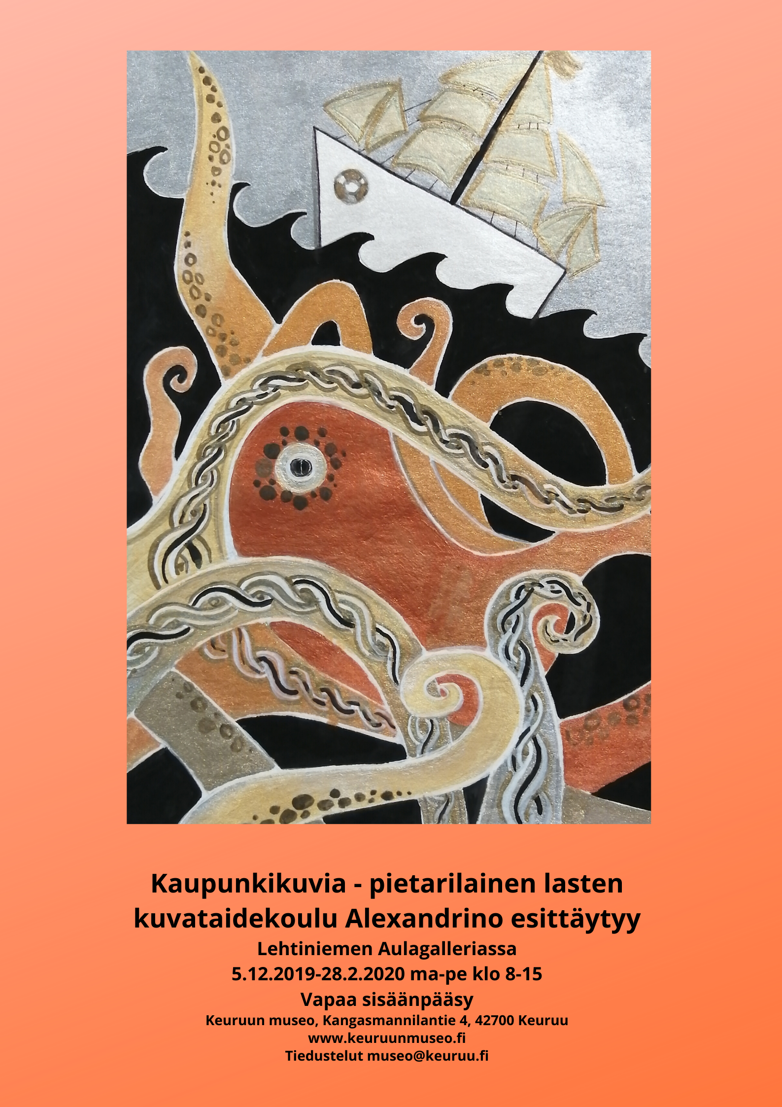 Lehtiniemen Aulagalleriassa on esillä pietarilaisen lasten kuvataidekoulu Aleksandrinon oppilaiden töitä. Näyttelyn teemana on kaupunki, meri, puut ja nuorison arki.